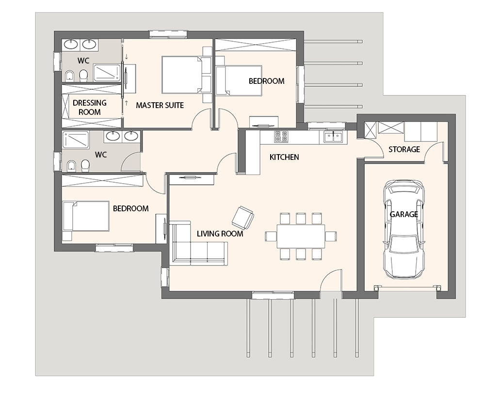 A 3D floor plan as a component of visualization is a cross between a basic drawing and a real-world image. Floor plans show the interior design of the premise to potential investors or buyers from the top, making all dimensions and measurements of the property clear and comprehensive.